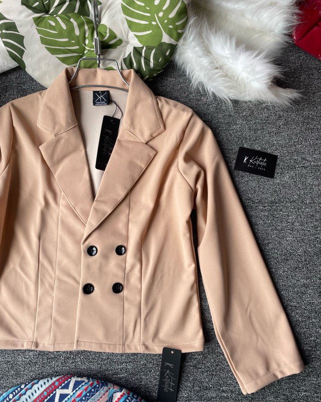 The cropped length adds a modern edge, while the overall design keeps it classy and timeless.