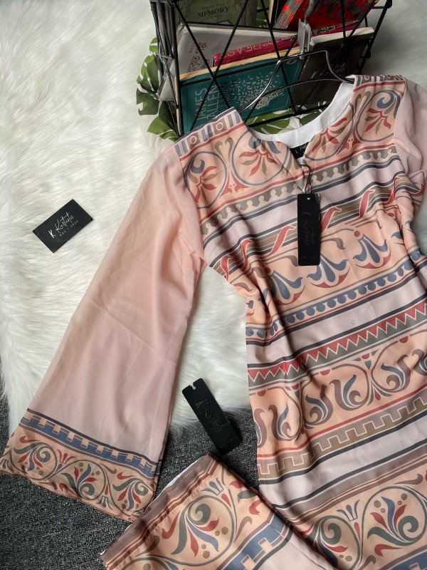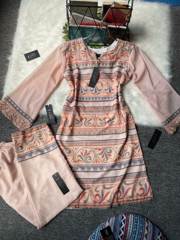 We used premium weightless georgette fabric for kameez and pant ( digital printed ) & we used single butter fabric for the inner only. Duppatta is also made with digital printed Weightless georgette.