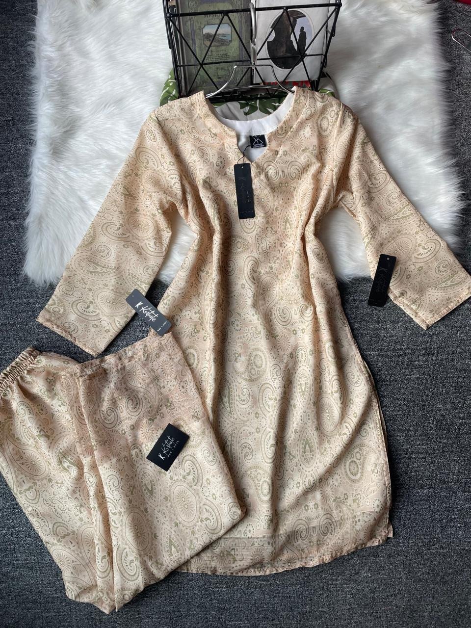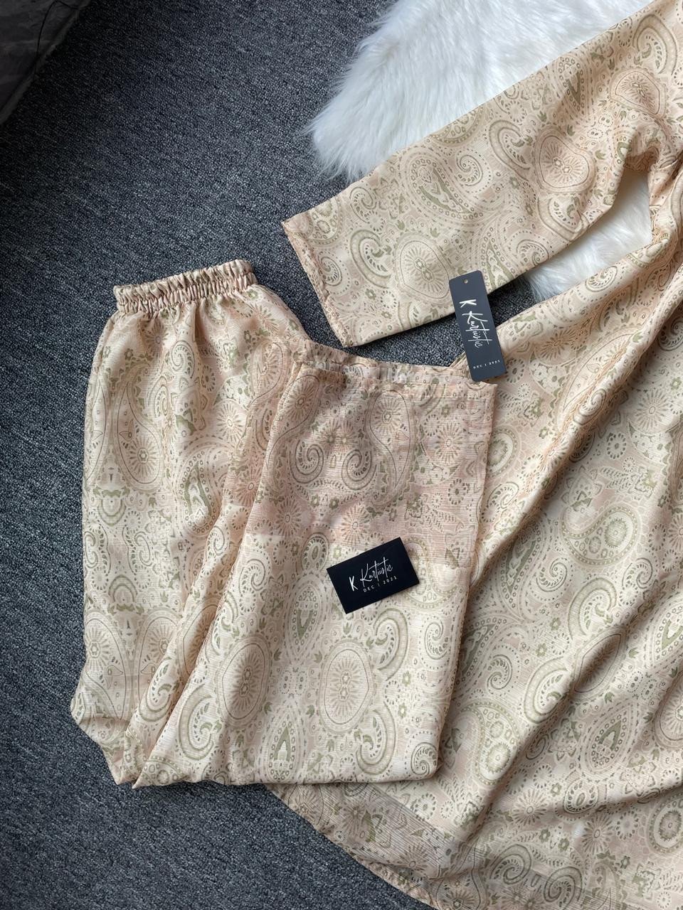 This co-ord set has been designed to give a clean, minimal, and high-end appearance. The solid color with soft golden undertones creates a luxurious aesthetic without needing heavy prints or embellishments. The simplicity is the statement — making it wearable for any age, any occasion, and any style preference.