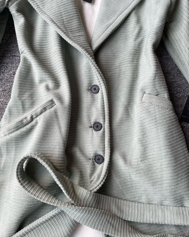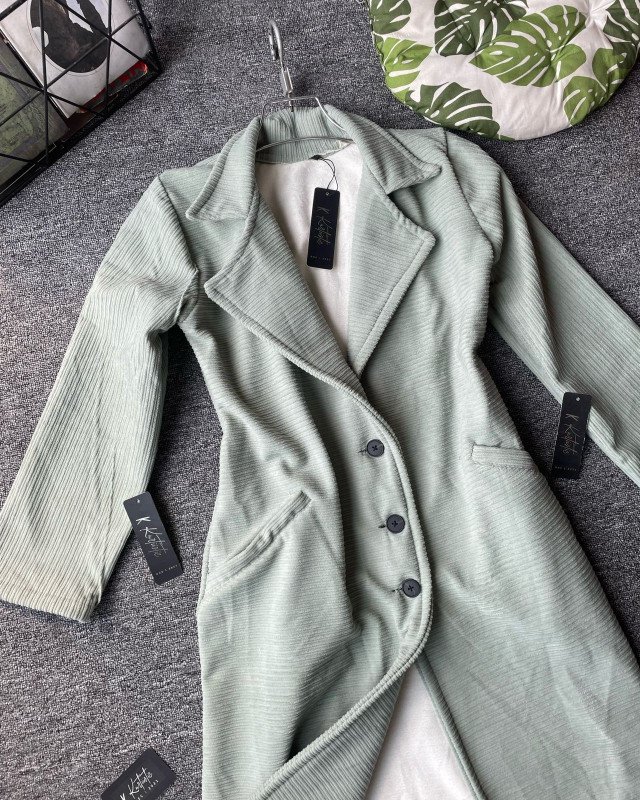 The coat is made from premium ribbed velvet fabric on the outside, offering a rich and luxurious appearance. The ribbed texture adds depth, dimension, and an expensive look — the kind you typically see in international boutique collections.
