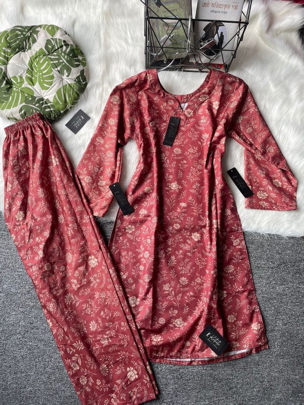 What makes this set truly stand out is its uniform print coordination between the dress and pant, creating a sophisticated co-ord effect that is both trendy and timeless. Whether you’re heading to a casual outing, a friendly get-together, or simply want to stay effortlessly stylish at home, this set is versatile enough to adapt to your day.