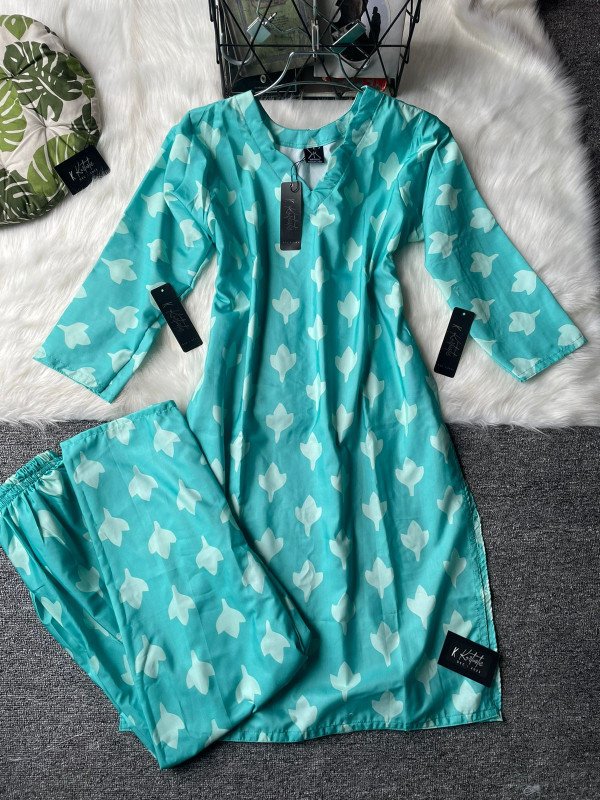 Kurtiistic Premium Blend Cotton Co-ord Set – Dress & Pant in Matching Print