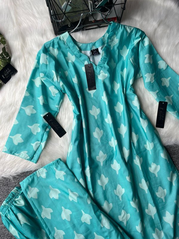 What makes this set truly stand out is its uniform print coordination between the dress and pant, creating a sophisticated co-ord effect that is both trendy and timeless. Whether you’re heading to a casual outing, a friendly get-together, or simply want to stay effortlessly stylish at home, this set is versatile enough to adapt to your day.