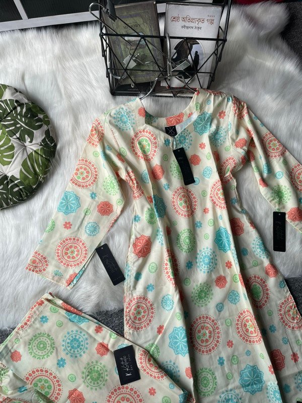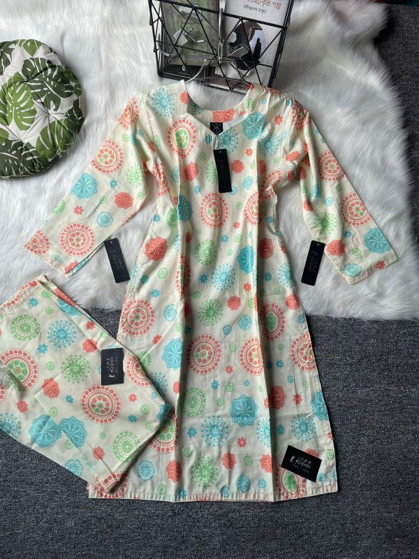 Kurtiistic Premium Blend Cotton Co-ord Set – Dress & Pant in Matching Print