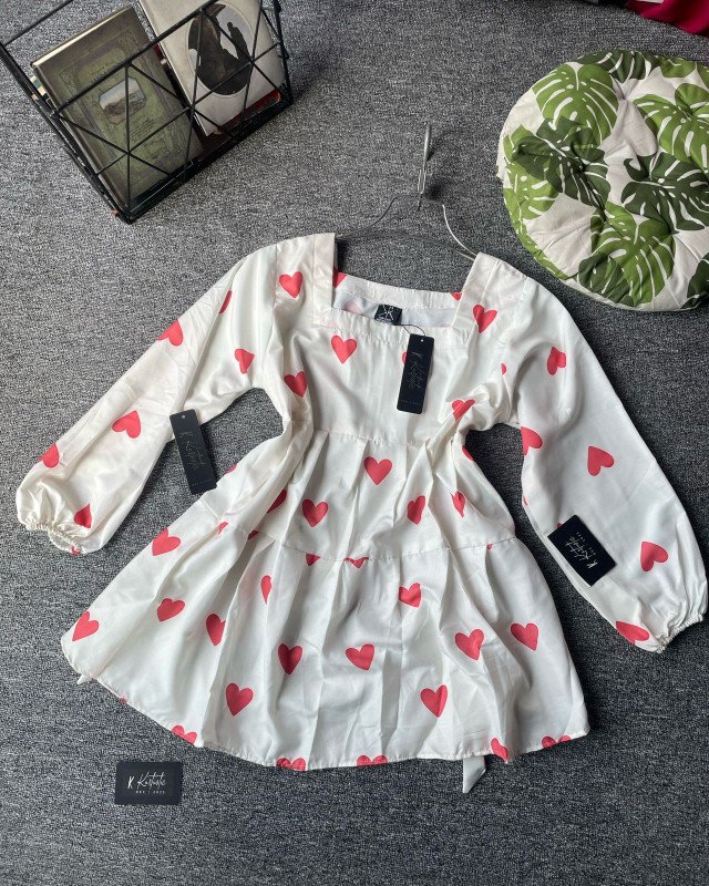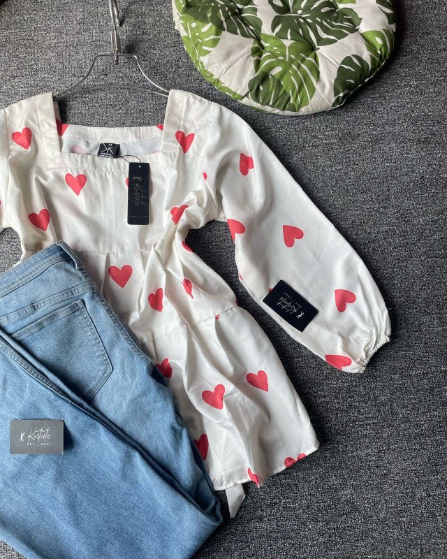 The top is crafted from blended cotton fabric, ensuring breathability and comfort for all-day wear. Its love-inspired print adds a soft romantic touch while keeping the look youthful and trendy. The cut is designed to flatter all body types, with a range of sizes from 32 to 44 and lengths of 26, 27, and 28 inches. The full sleeves give it a polished finish, making it suitable for both casual and semi-formal outings.