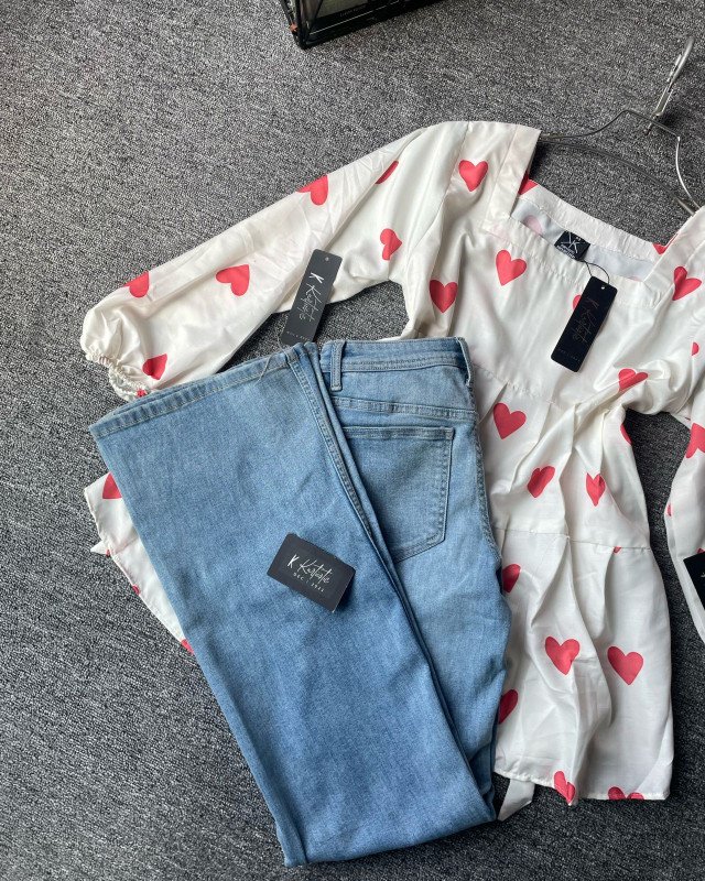 The jeans included in this collection are made from high-quality stretch cotton, tailored for a perfect fit. Available in waist sizes 26–40 and lengths 38, 40, and 42, they provide flexibility and comfort while maintaining structure. You can easily pair them with the printed top for a chic, confident everyday look — perfect for hangouts, shopping days, or weekend coffee plans.