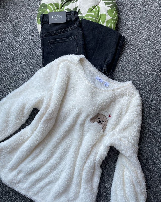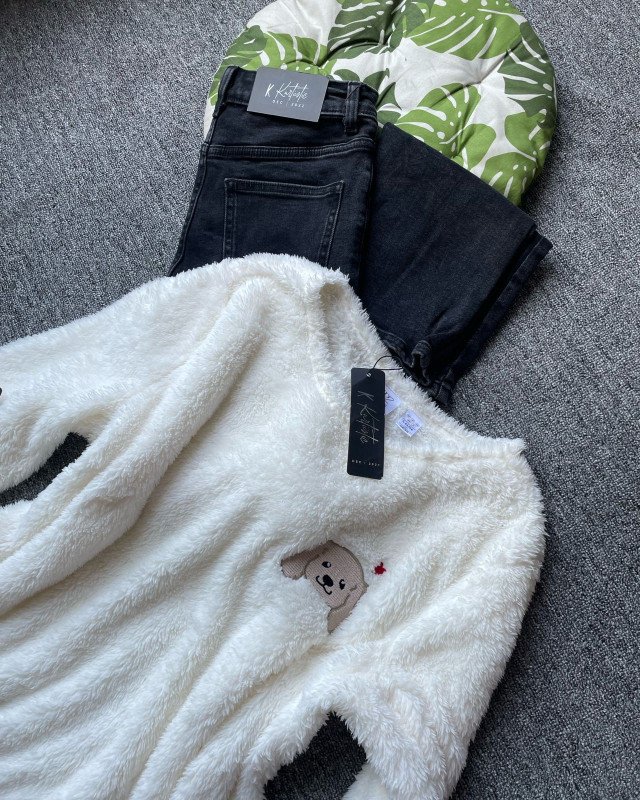 The color of the top is a premium creamy off-white, giving a fresh winter aesthetic that pairs effortlessly with any bottoms—especially black jeans, blue denim, joggers, or winter leggings. The entire piece has a luxurious, soft glow due to the fluffy fleece fibers, making it visually appealing, cozy, and extremely gift-worthy.