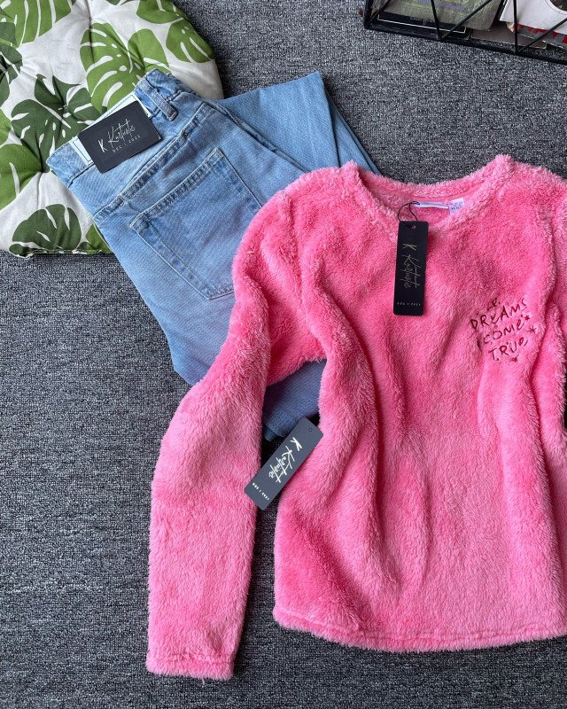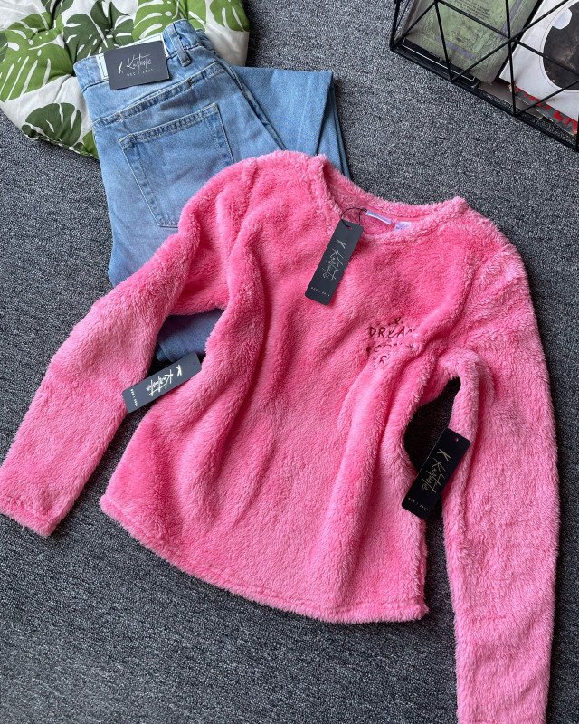 winter sweatshirt w/jeans - Hot Pink / Bright Fuchsia Pink.