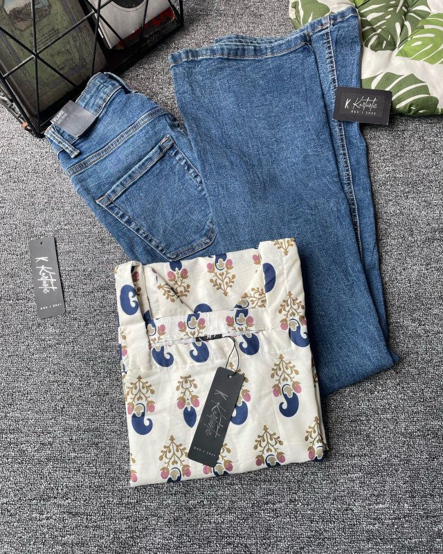 This set includes a premium blend cotton Kurti paired with high-quality stretch jeans, making it a perfect choice for both casual and semi-formal wear. Whether you’re heading to a coffee date, a weekend outing, or just want a fresh everyday look — this combo ensures you step out in style and confidence.