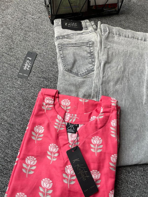 The Kurti & Jeans Combo easily transitions from daytime elegance to evening casual. Pair it with minimal accessories and your favorite Kurtiistic perfume, and you’re ready to make a statement wherever you go. The fabric’s comfort, the fit’s perfection, and the design’s simplicity make it a wardrobe essential for every season.