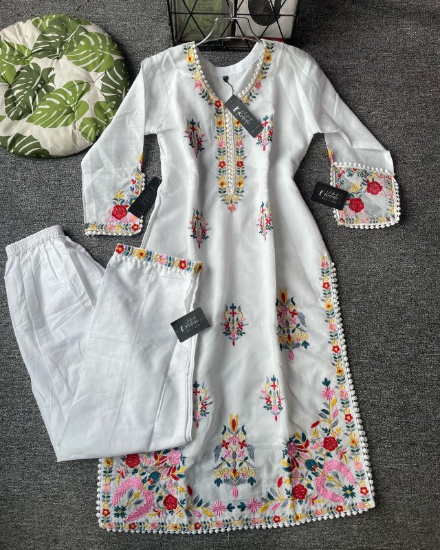 Introducing the stunning Kurtiistic “RONGON” White Embroidery Co-ord Set — a masterpiece that blends elegance, comfort, and traditional artistry. After a long time, Kurtiistic presents a fully embroidered co-ord that celebrates the beauty of handcrafted details and timeless design. This collection is inspired by the delicate Rongon flowers, symbolizing color, life, and warmth — and this outfit reflects exactly that spirit.