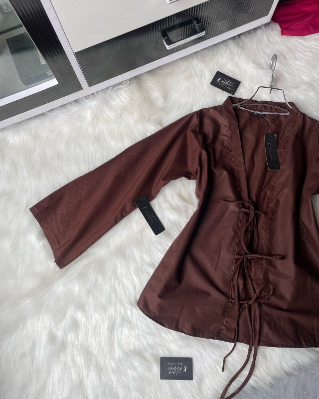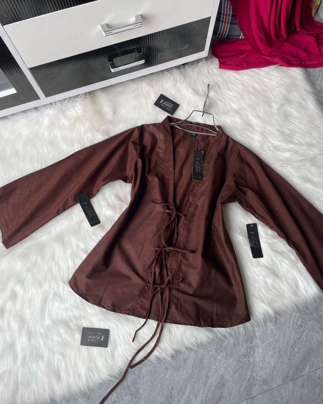 The Kimino Top is tailored with a front-tie wrap design, offering an adjustable fit that gracefully complements every body shape. With a bust size range of 32 to 44 inches and a length of 26-27 inches, the top ensures ease of wear while maintaining a structured silhouette. The full-length sleeves add a touch of sophistication, making it perfect for both casual outings and refined gatherings.
