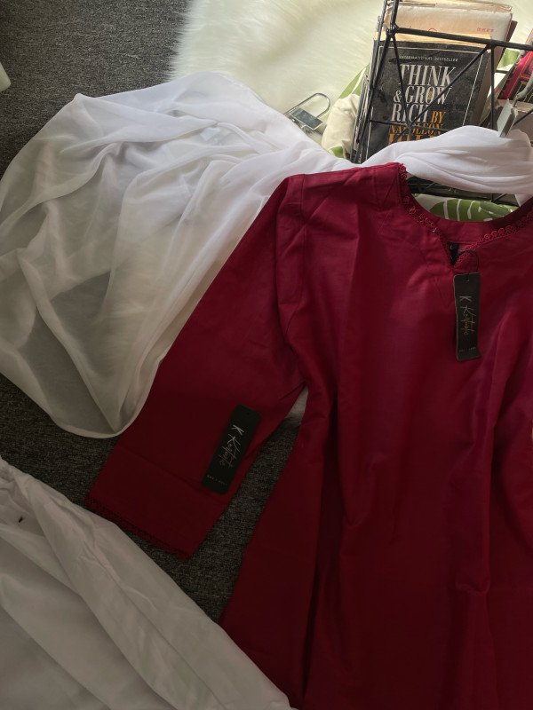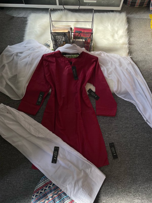 We used very comfortable cotton fabric for the pants and for the kameez and we used weightless georgette for the dupatta.