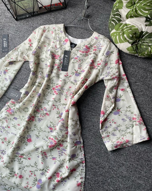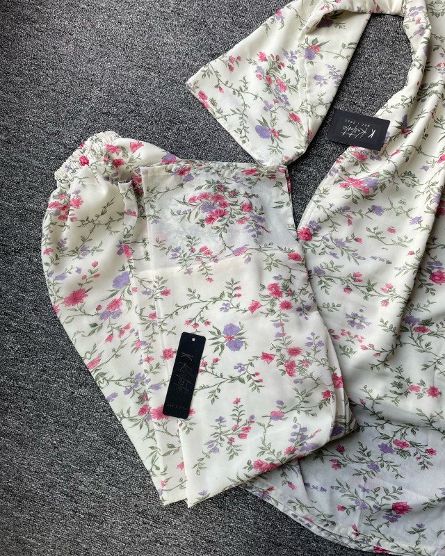 These pastel tones create a fresh, romantic, spring-garden vibe. The print placement feels natural and light, never overwhelming — perfect for those who love graceful simplicity.
