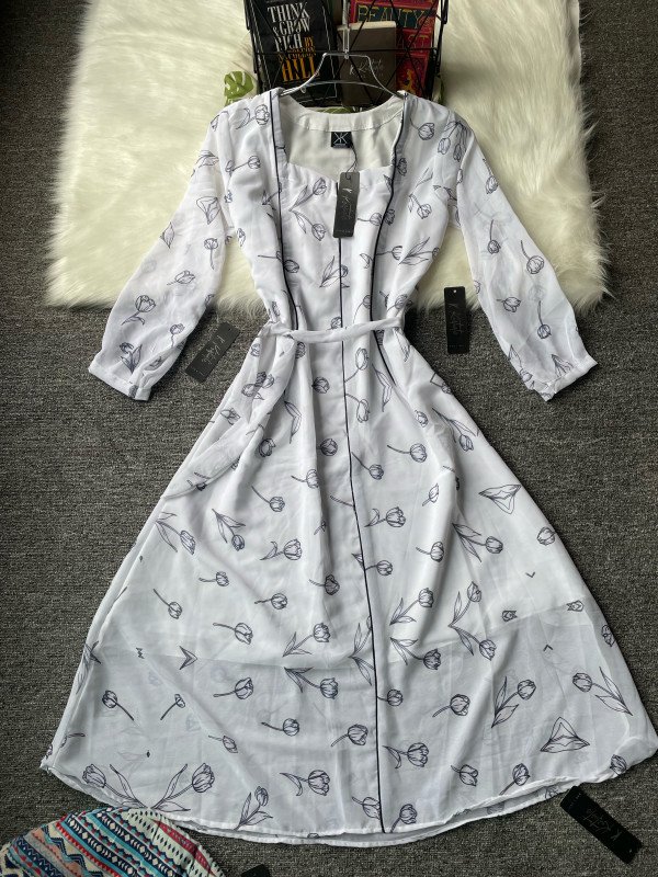 Kurtiistic digital rose printed white gown
