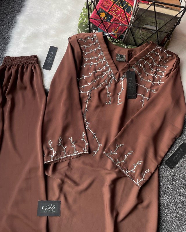 "SHIKOR' - ( Coffee )- kurtiistic premium stone work co-ords