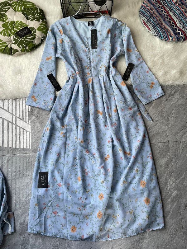 This exquisite piece from Kurtiistic is crafted to blend timeless elegance with modern comfort, making it an essential addition to your wardrobe. Designed from premium jorjet fabric, the dress drapes beautifully on the body while remaining breathable and soft against the skin. Its lightweight texture makes it suitable for both daily wear and special gatherings, ensuring that you always look graceful without compromising on comfort.