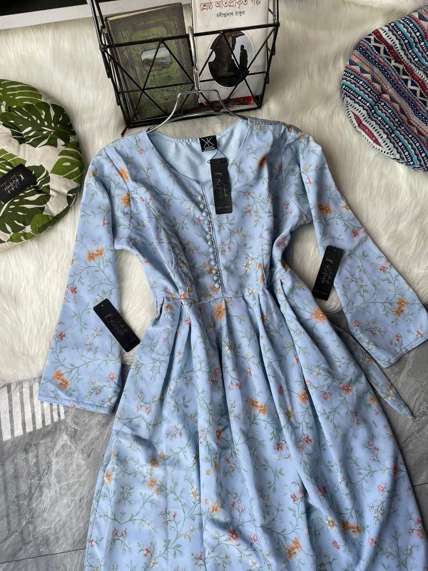 The material used is high-quality jorjet, known for its flowy nature, subtle sheen, and soft touch. Unlike heavier fabrics, jorjet provides a smooth fall that enhances the silhouette without clinging to the body. The fabric is wrinkle-resistant, easy to manage, and ideal for women who prefer effortless elegance. With its durable weave, this dress promises long-lasting wear even after multiple washes.