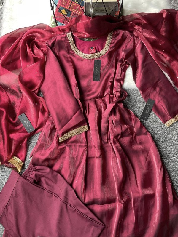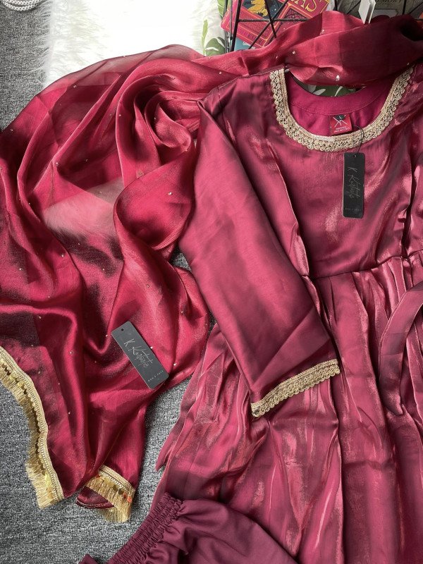 ( GULBAHAR ) deep wine red with subtle golden shimmer | Kurtiistic New eid arrivals Premium Afgan Silk designer gown | Eid collection 2026.