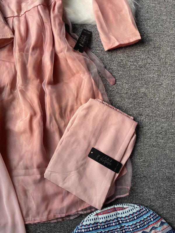 We used premium organza fabric and did digital print on the fabric ( pookie print kora ache which is slightly visible khub kach theke dekhle bujhte parben )