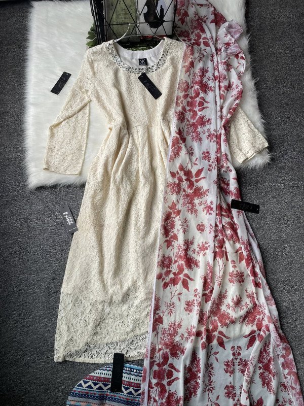 Fabric and details: we used premium net fabric for the gown and it has heavy embroidery work all over the fabric and we did stone work on the neck to make it more gorgeous. Orna is made with weightless digital printed georgette fabric.