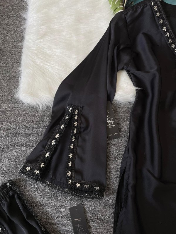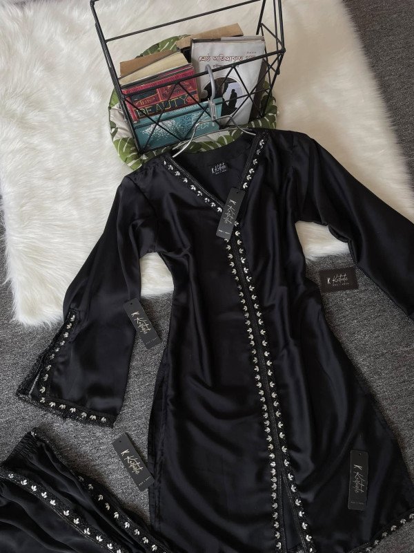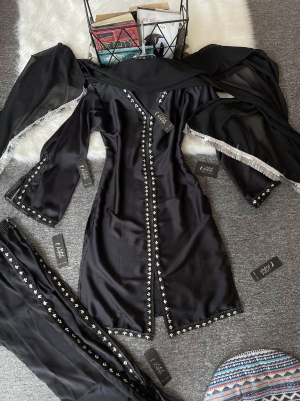 Kurtiistic New Premium Silk Stone Lace Three Pieces ( Black Colour )