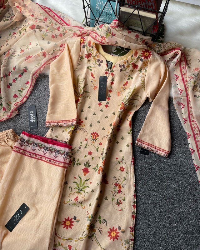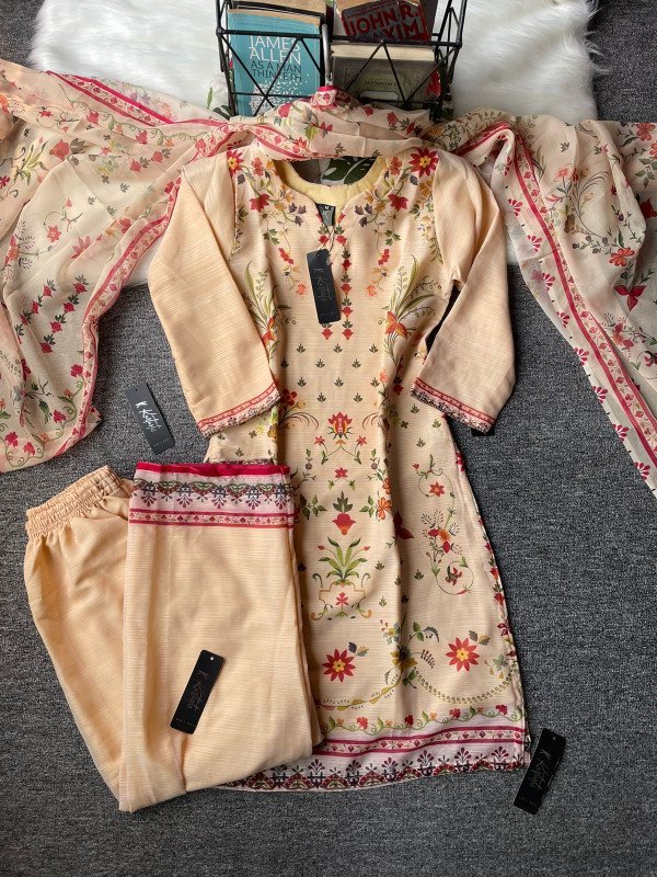 Eid is a celebration of joy, togetherness, and timeless elegance—and the Soft Peach Beige Kurtiistic Eid Collection is designed to reflect exactly that. This premium printed three piece set has been thoughtfully created for women who value refined style, superior comfort, and long-lasting quality. More than just an outfit, it is a graceful expression of festive sophistication, made to help you feel confident, comfortable, and beautifully dressed throughout the special days of Eid.