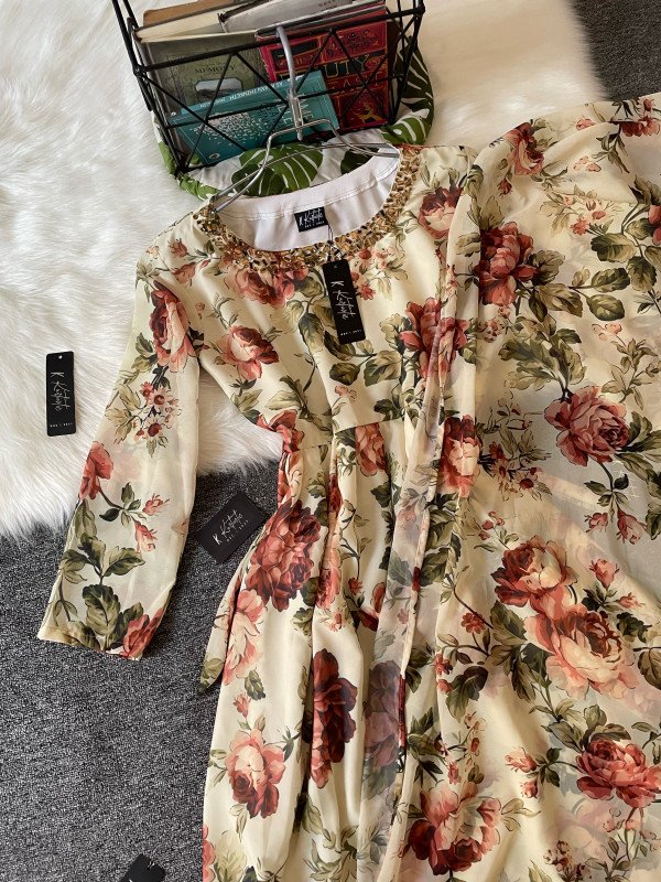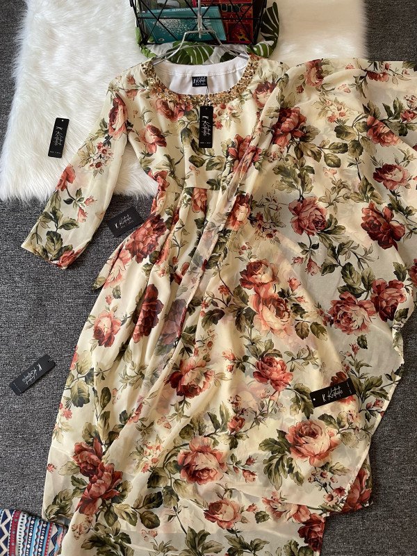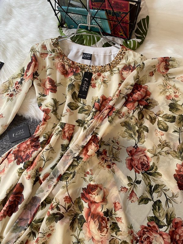 Kurtiistic Eid arrival : kurtiistic premium georgette printed gown with stone work design.