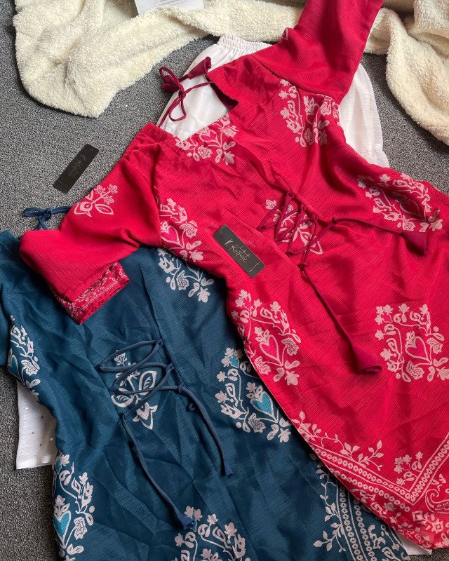A perfect blend of elegance, comfort, and timeless style, the SHEFALI Kurti & Skirt Set from Kurtiistic is thoughtfully designed for women who love graceful fashion with a modern touch. This premium ensemble is ideal for festive occasions, casual gatherings, family functions, and even elegant day wear. Available in two stunning shades—Royal Red ❤️ and Elegant Teal Blue ?—SHEFALI is crafted to make you feel confident, comfortable, and effortlessly stylish.