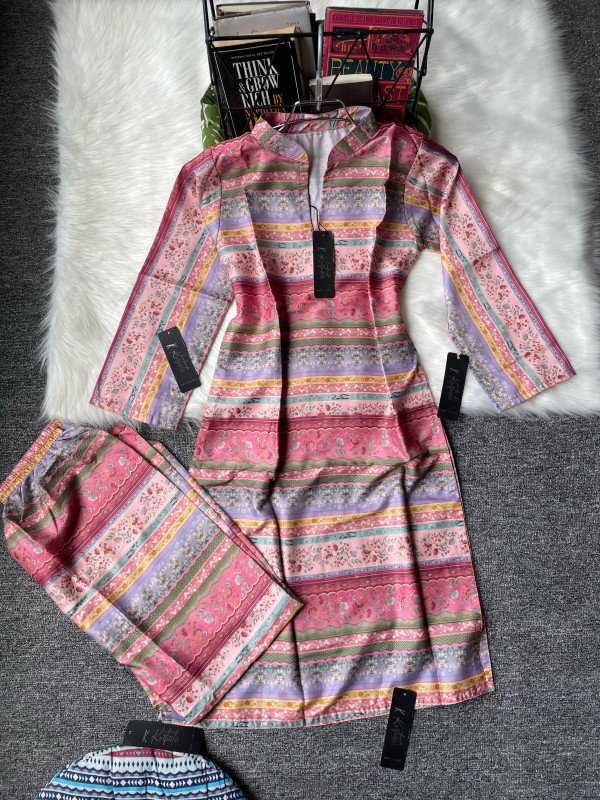Kurtiistic premium summer friendly co-ords set available now. Sizes~ Bust: 32-44 | Length: 38/39 | sleeves: Full. | pant waist: Free Size. | Pant Length: 38 | Fabric & details: We used premium digital printed butter fabric for the kameez and pant. Which is very soft and smooth, comfortable to wear in summer days. Price - 899 bdt only.