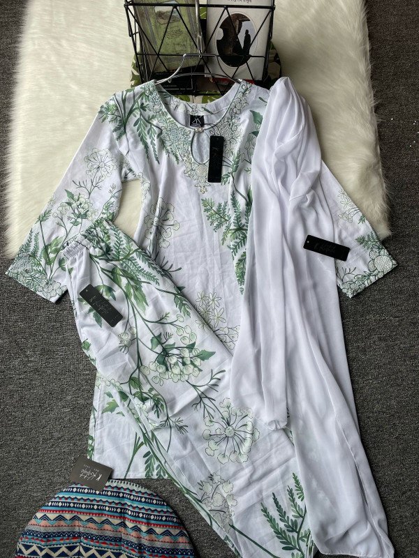 kurtiistic VANGCHUR fabric with digital printed and stone work three pieces ( green floral )