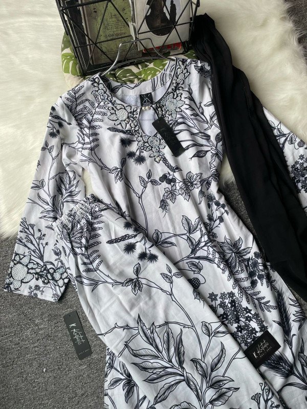 kurtiistic VANGCHUR fabric with digital printed and stone work three pieces ( black floral ) )