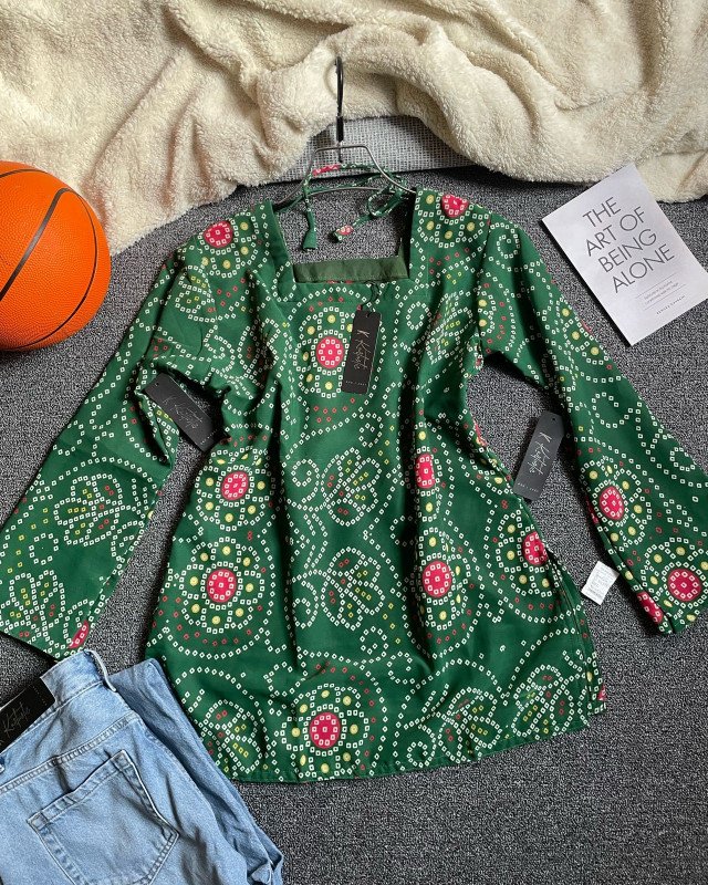 This short kurti is crafted using premium Vatik digital printed weightless georgette fabric. The fabric feels incredibly light on the body, making it ideal for long hours of wear, whether you are attending a casual gathering, university, office, or a festive daytime event. The digital Vatik prints maintain sharp detailing, rich color depth, and long-lasting vibrancy. Unlike traditional heavy prints, this digital version ensures clarity in every motif while keeping the fabric breathable and soft.