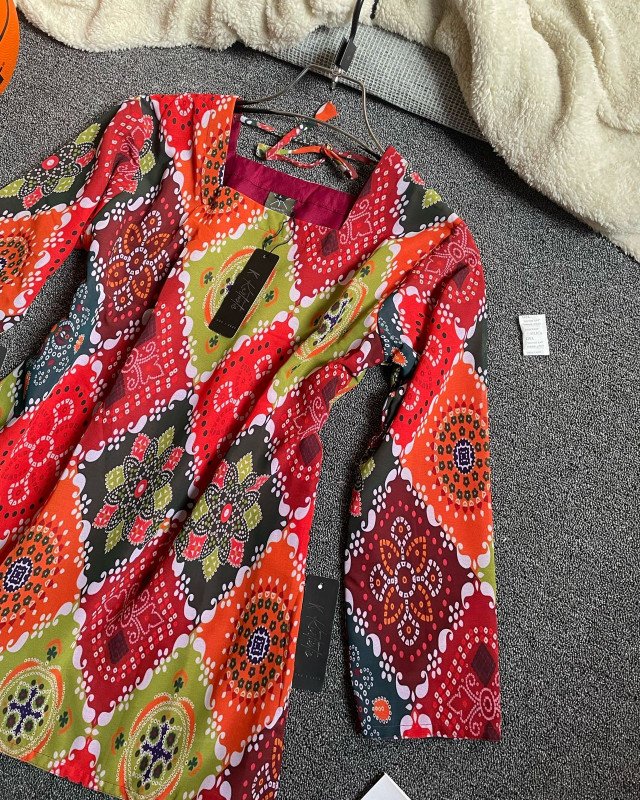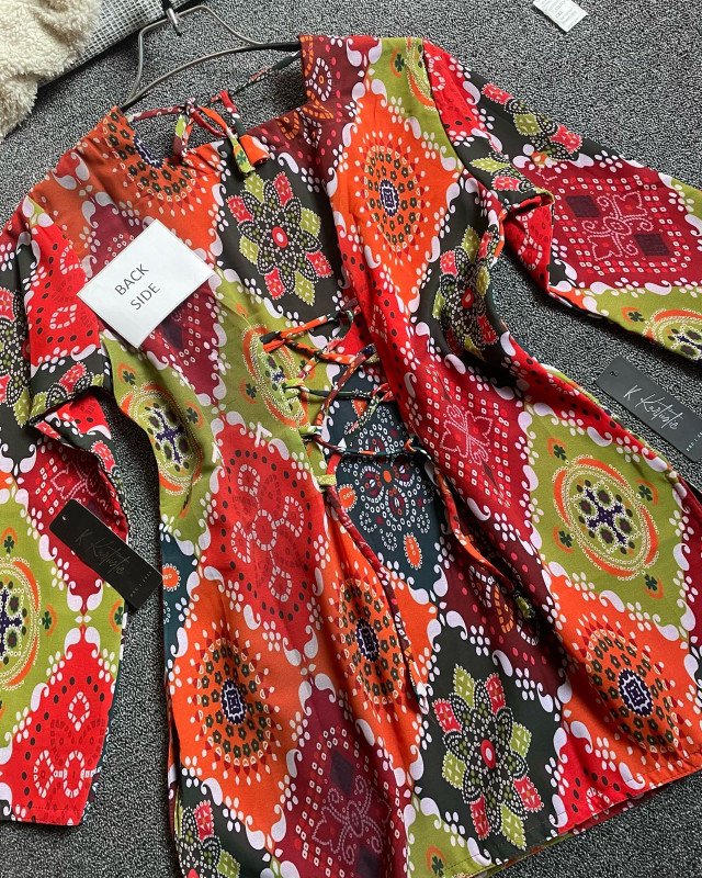 This short kurti is crafted using premium Vatik digital printed weightless georgette fabric. The fabric feels incredibly light on the body, making it ideal for long hours of wear, whether you are attending a casual gathering, university, office, or a festive daytime event. The digital Vatik prints maintain sharp detailing, rich color depth, and long-lasting vibrancy. Unlike traditional heavy prints, this digital version ensures clarity in every motif while keeping the fabric breathable and soft.