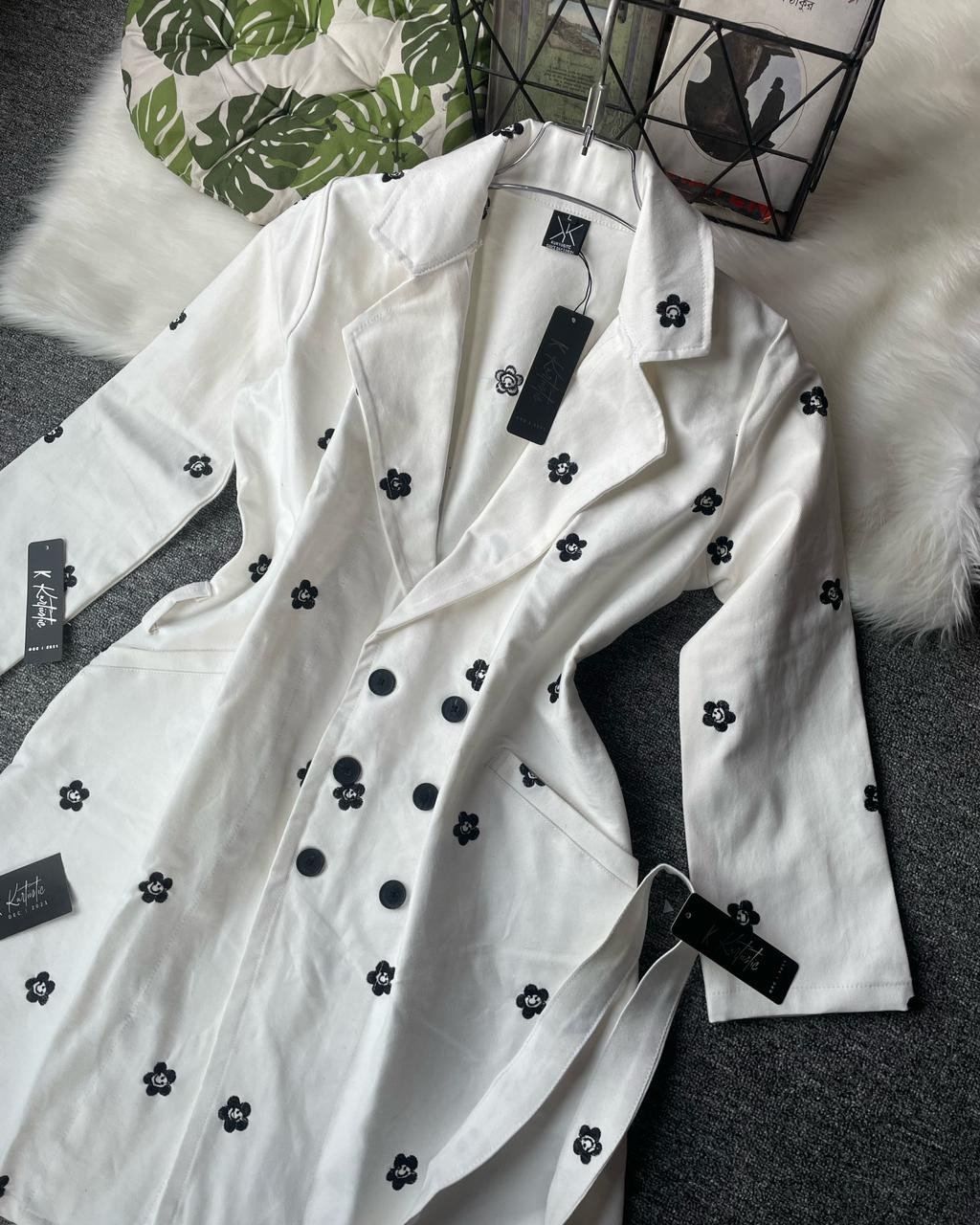 The main highlight of this coat is the black floral embroidery, designed to complement the pure white base beautifully.