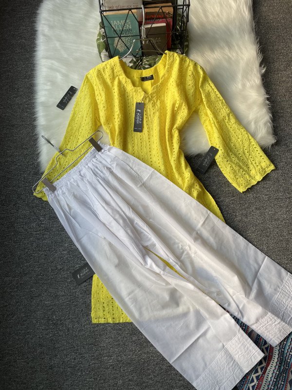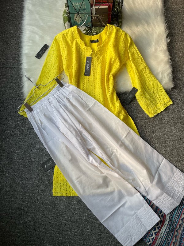 Match these three chikankari kurti with only one FARSHI SHALWAR. Kurtiistic premium chickenkari co-ords / two piece available now. You can only buy the kameez if you want. Sizes of the kameez~ Bust: 32-42 | Length: 40/41 | Sleeves : Full Sizes of the FARSHI SHALWAR. Length: 39/40 | waist: Free size anyone can wear it. Only Kameez - 950 With pant - 1199