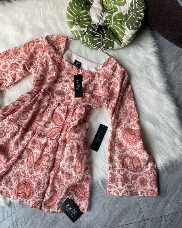NOR-E-AFZA ( intricate paisley pattern in shades of red, peach, and muted orange. ) - variat