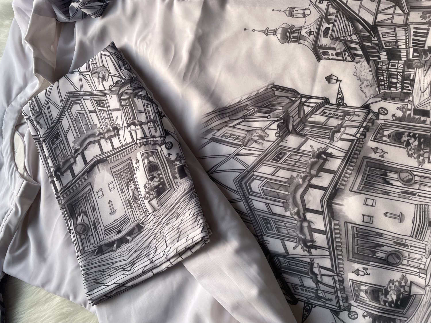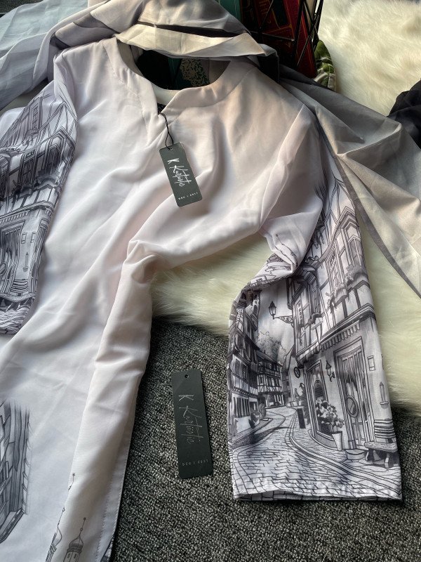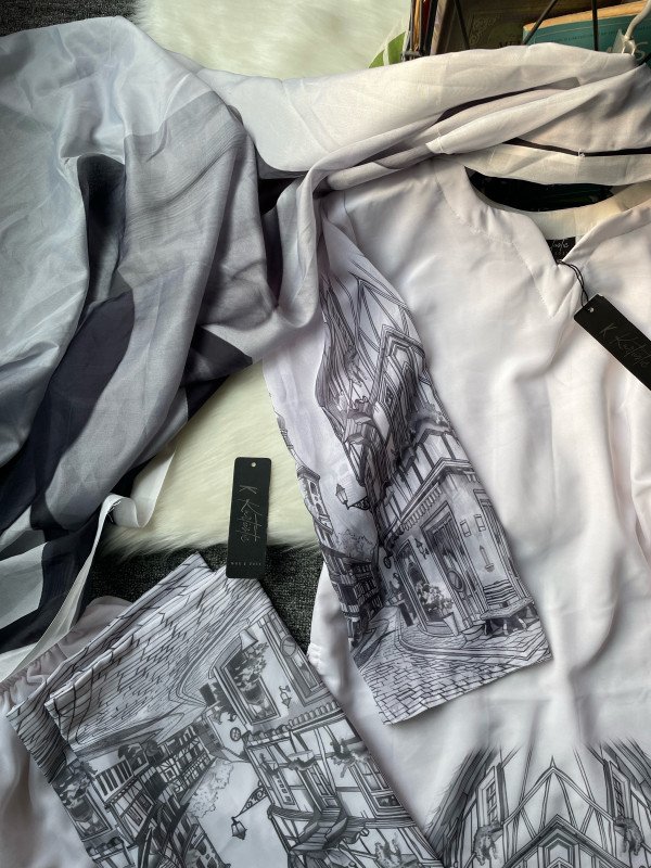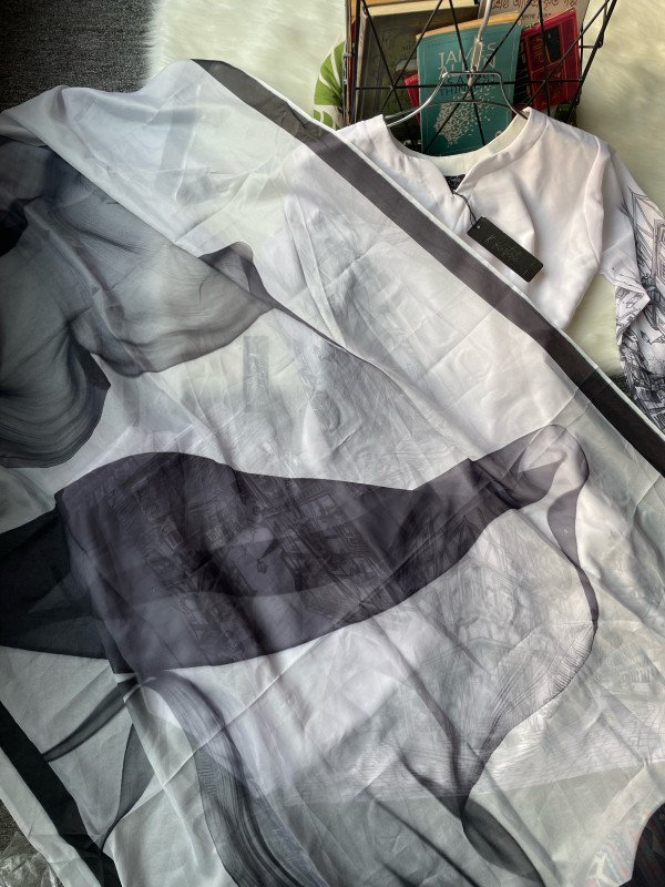 We used premium weightless georgette fabric for kameez and pant ( digital printed ) & we used single butter fabric for the inner only. Duppatta is also made with digital printed Weightless georgette.