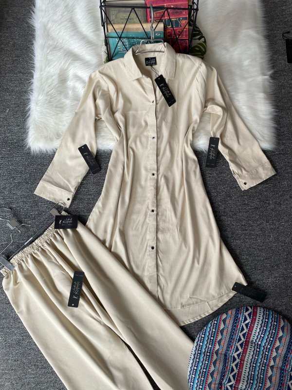 premium cotton beige ladies long shirts with pant