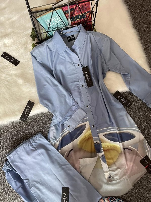 Sky Blue Cartoon Printed Co-ords