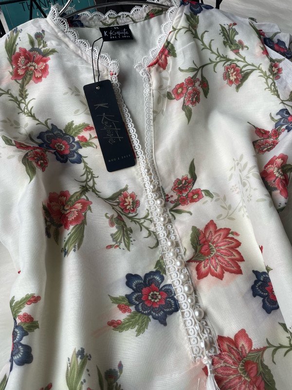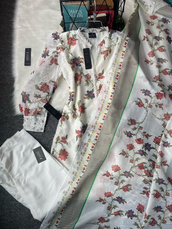 We used premium digital printed chondri fabric ( see through cotton type fabric ) and single fabric for the inner. Duppatta is made with see through chondri fabric & pant is made with butter fabric.