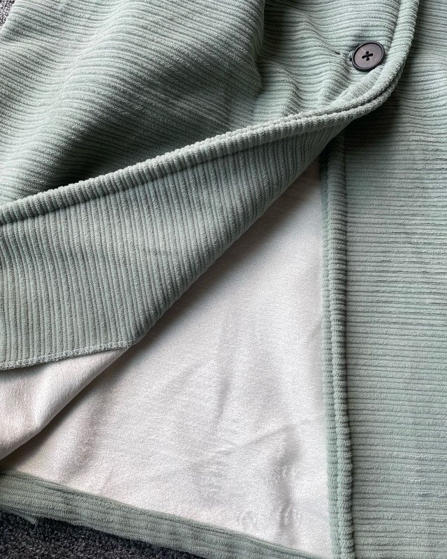 The coat is made from premium ribbed velvet fabric on the outside, offering a rich and luxurious appearance. The ribbed texture adds depth, dimension, and an expensive look — the kind you typically see in international boutique collections.