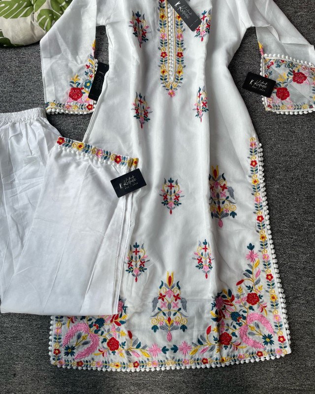 Introducing the stunning Kurtiistic “RONGON” White Embroidery Co-ord Set — a masterpiece that blends elegance, comfort, and traditional artistry. After a long time, Kurtiistic presents a fully embroidered co-ord that celebrates the beauty of handcrafted details and timeless design. This collection is inspired by the delicate Rongon flowers, symbolizing color, life, and warmth — and this outfit reflects exactly that spirit.