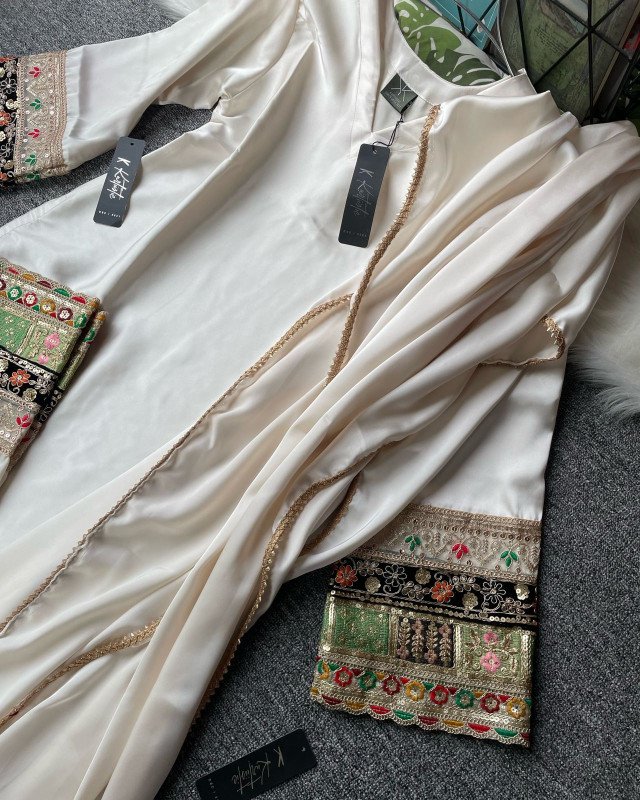 ( creamy off white ) Kurtiistic Eid Collection - 04 | Premium Dubai Silk Fabric three piece set