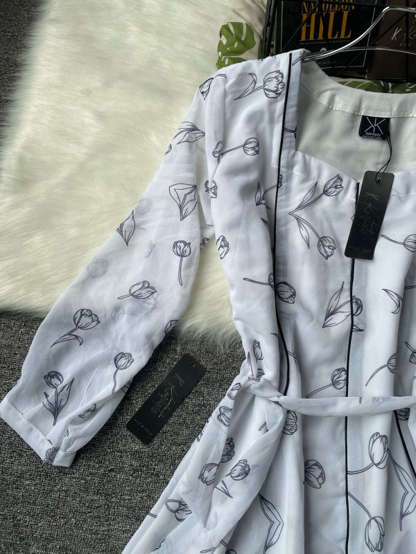 Kurtiistic digital rose printed white gown