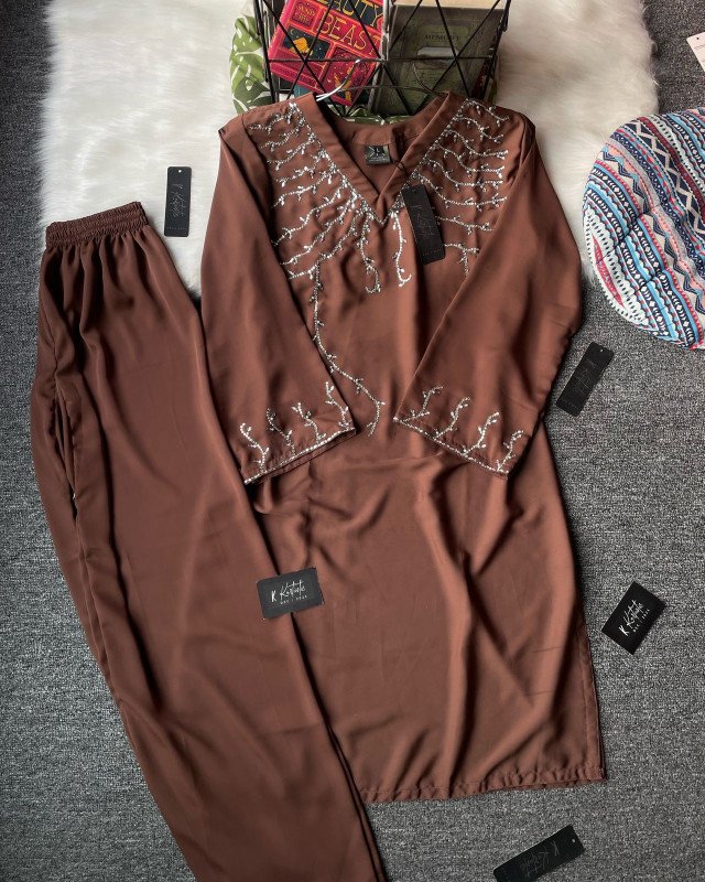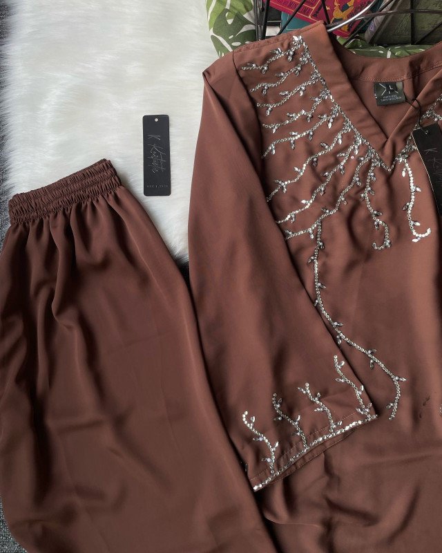 "SHIKOR' - ( Coffee )- kurtiistic premium stone work co-ords