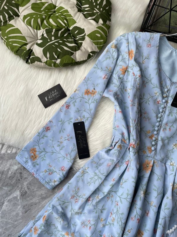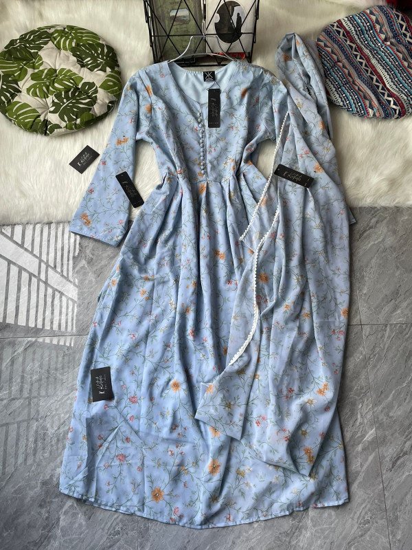 This exquisite piece from Kurtiistic is crafted to blend timeless elegance with modern comfort, making it an essential addition to your wardrobe. Designed from premium jorjet fabric, the dress drapes beautifully on the body while remaining breathable and soft against the skin. Its lightweight texture makes it suitable for both daily wear and special gatherings, ensuring that you always look graceful without compromising on comfort.