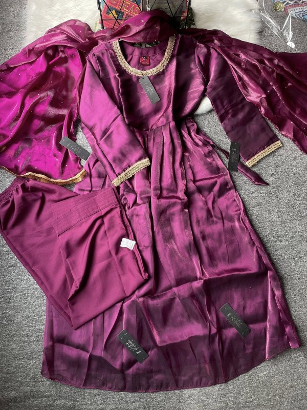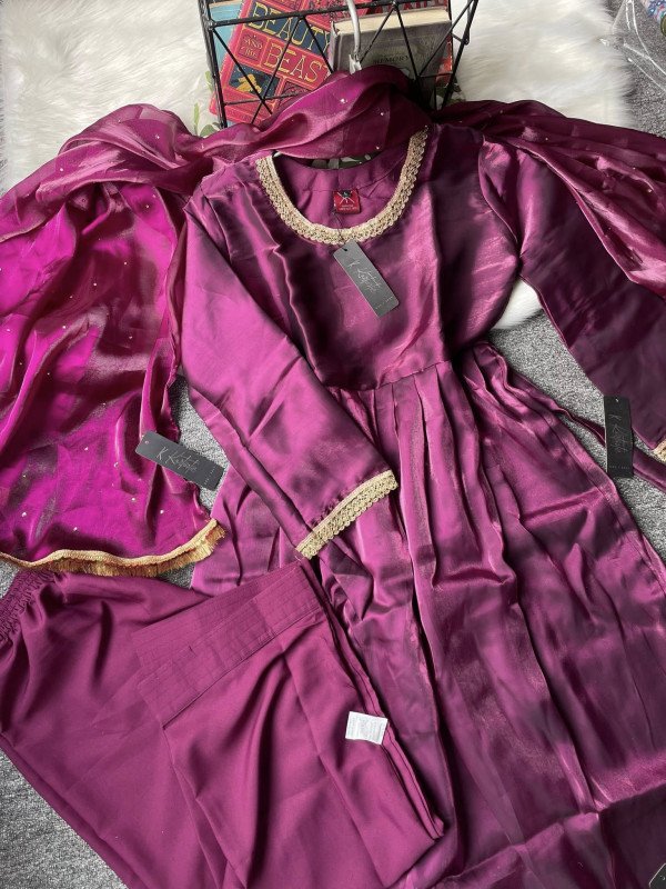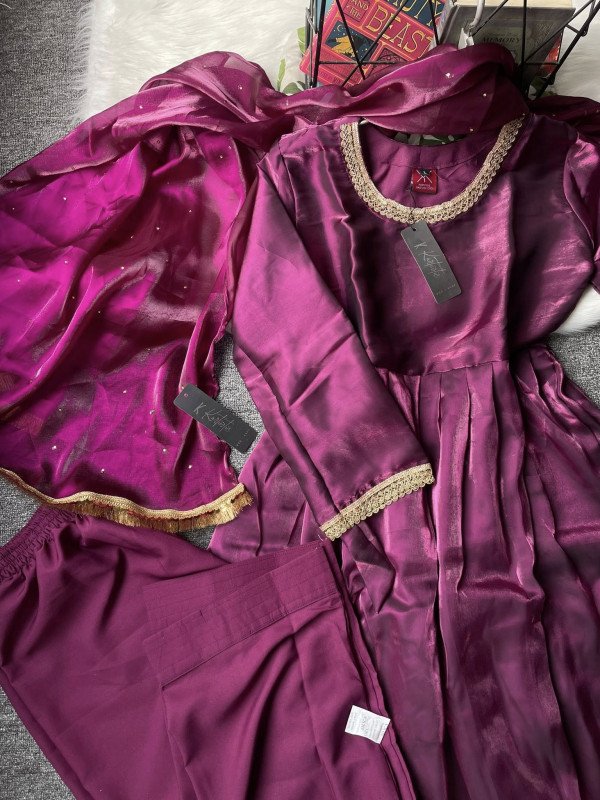 ( GULBAHAR ) Royal Magenta with subtle golden shimmer | Kurtiistic New eid arrivals Premium Afgan Silk designer gown | Eid collection 2026.