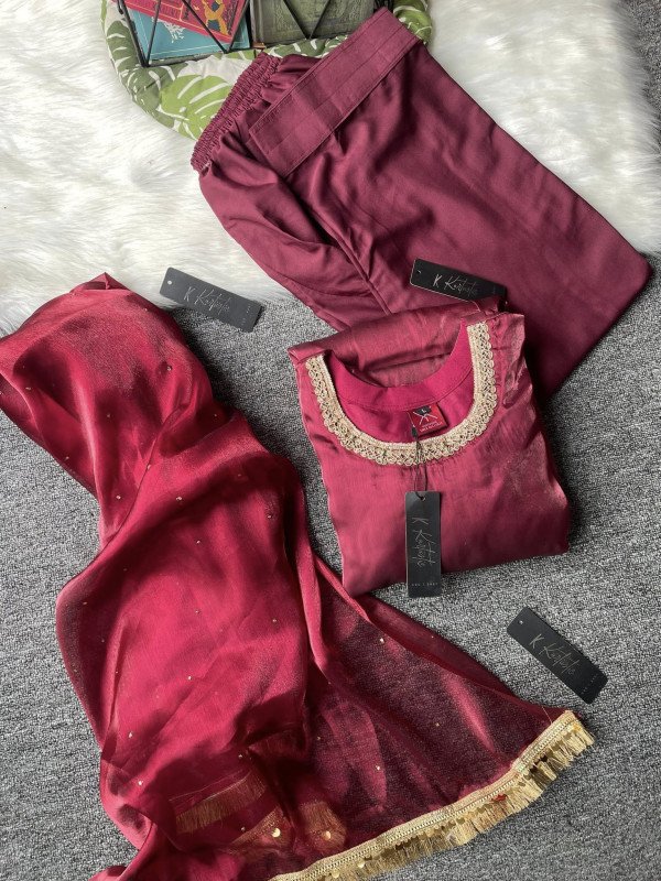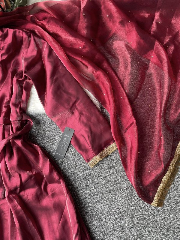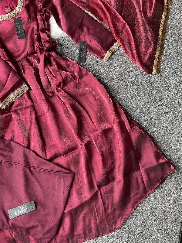 ( GULBAHAR ) deep wine red with subtle golden shimmer | Kurtiistic New eid arrivals Premium Afgan Silk designer gown | Eid collection 2026.