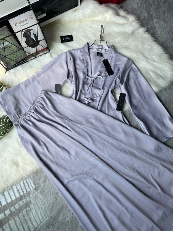 ✨ In summary, this outfit combines aesthetic elegance, premium-quality fabric, and functional comfort. Its subtle color, oriental-inspired tie-knot detailing, and flowing structure make it a refined choice for modern women who value both style and comfort.